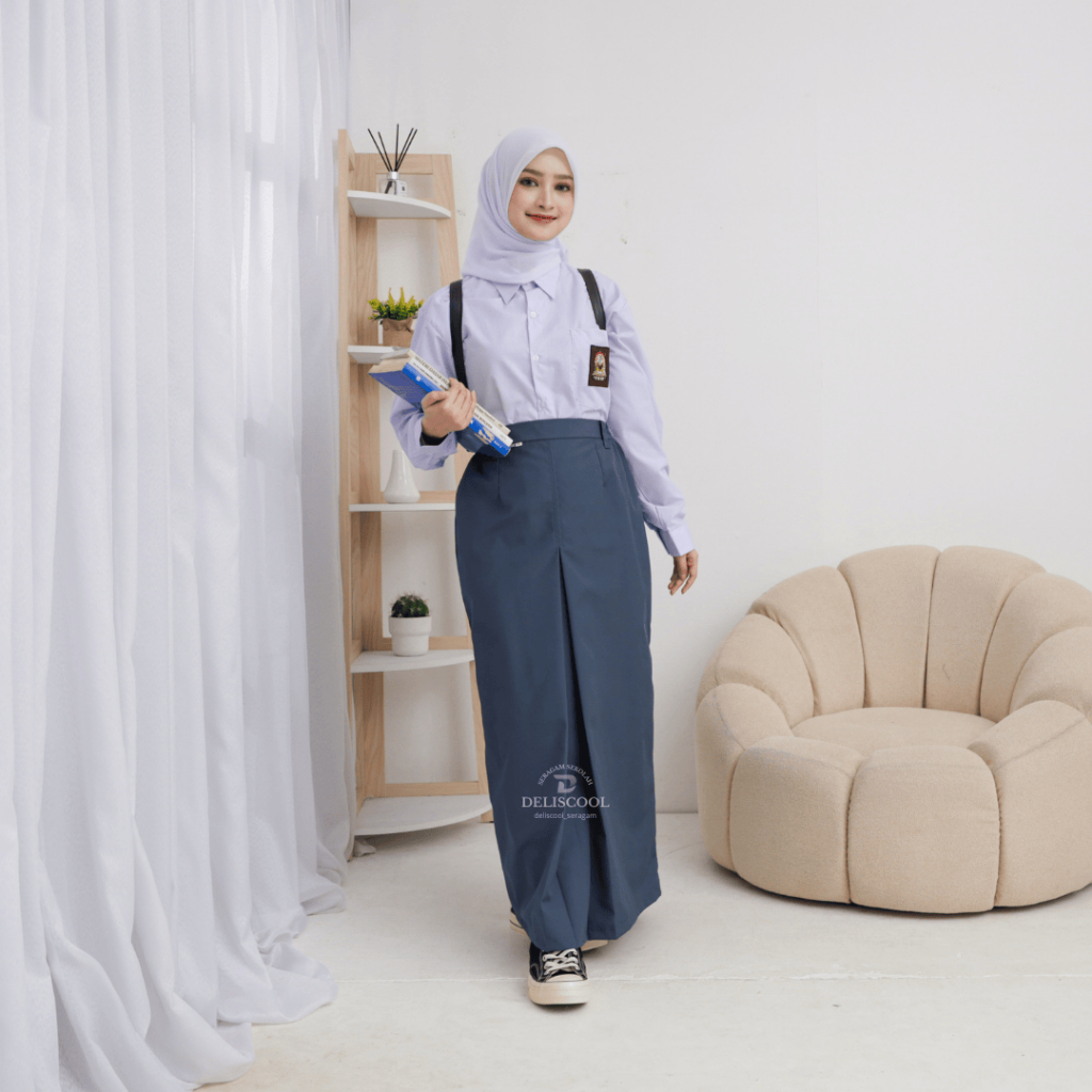 Deliscool Seragam SMA Rok Panjang Span Abu - Seragam Sekolah - Rok Span - Rok SMA