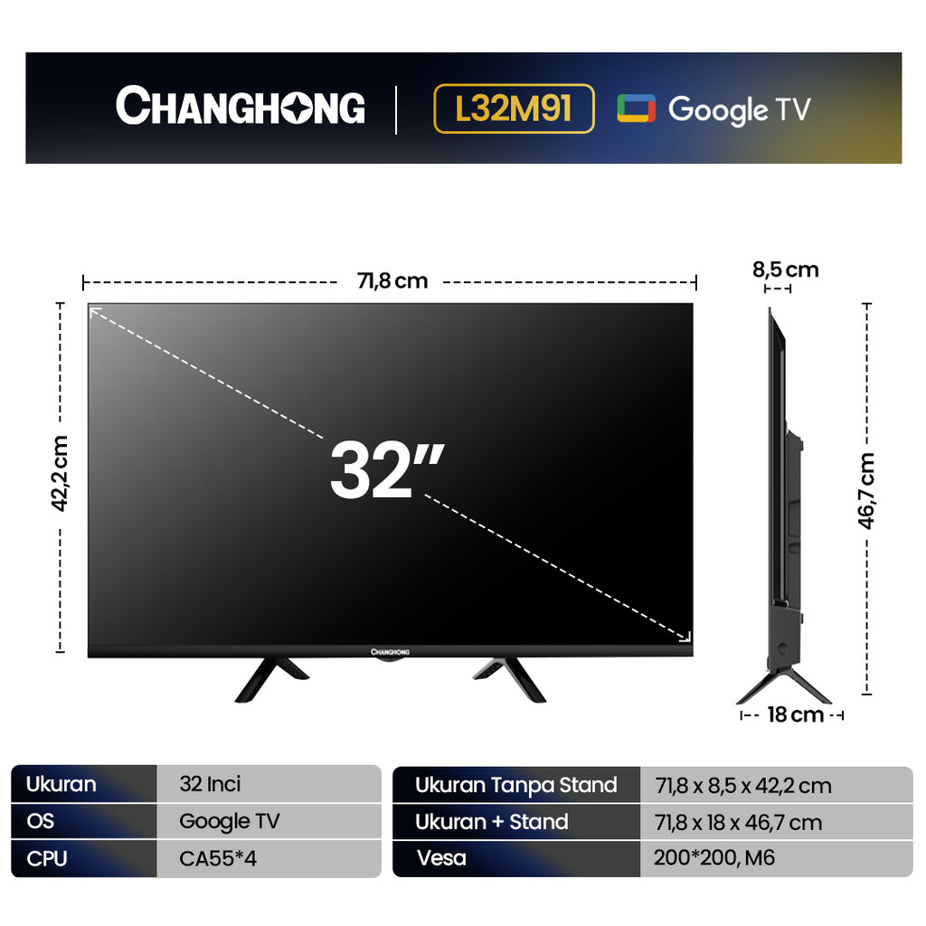 LED TV TERLARIS - Changhong Google TV 32 inch L32M91 Dolby Netflix Youtube Smart Digital TV ANDROID