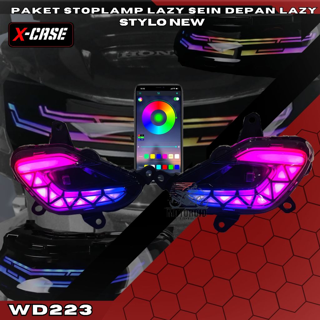 Paketan 2in1 Stoplamp Lazy Sein Depan Stylo 160 ABS RGB Connect HP Magnet Click e Include Soket