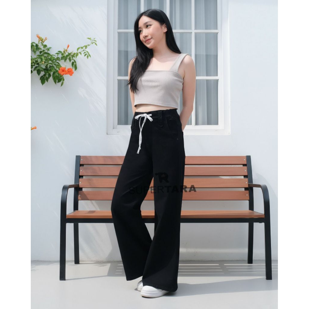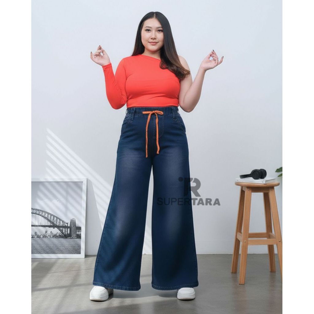 celana jeans panjang wanita kulot skena pinggang karet melar soft jeans