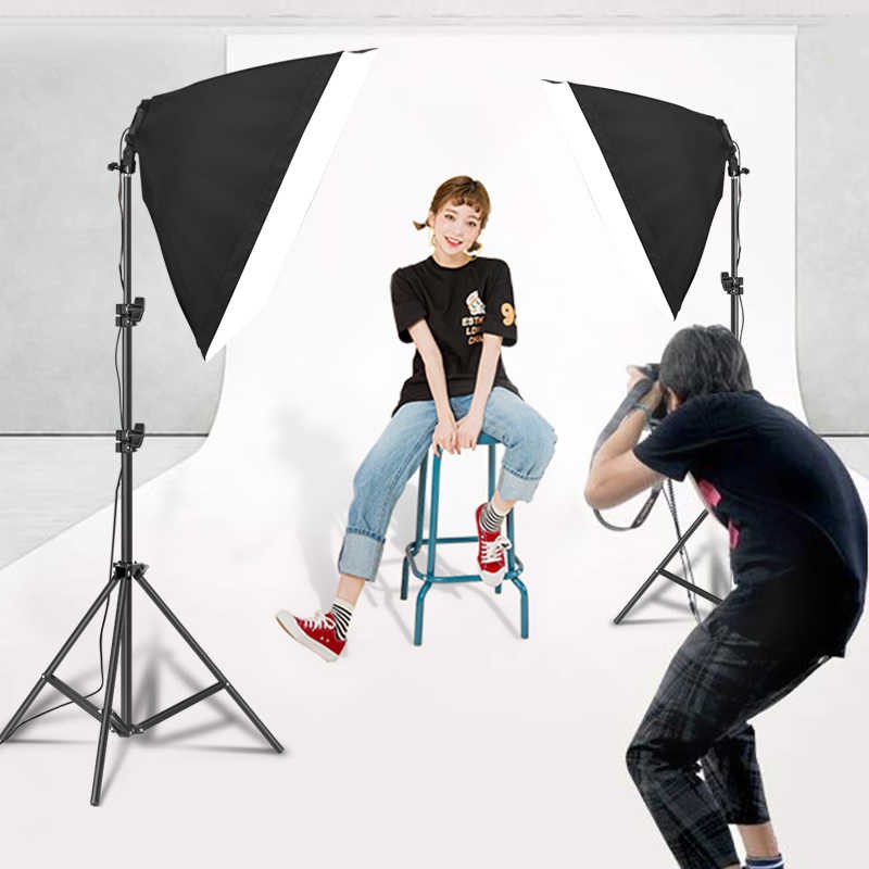 Paket Studio Light Stand 2M+ 4 Socket E27 + Softbox Lighting - 1 Set