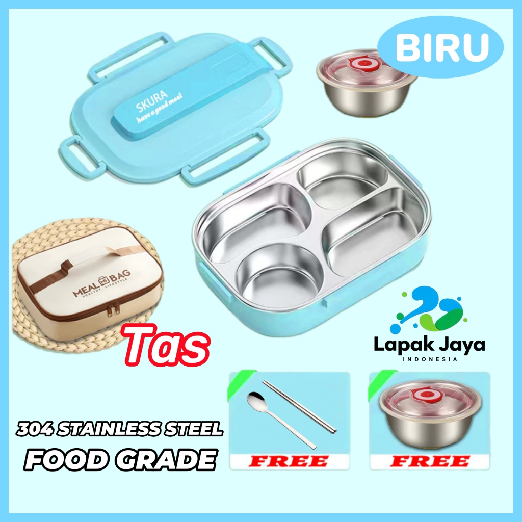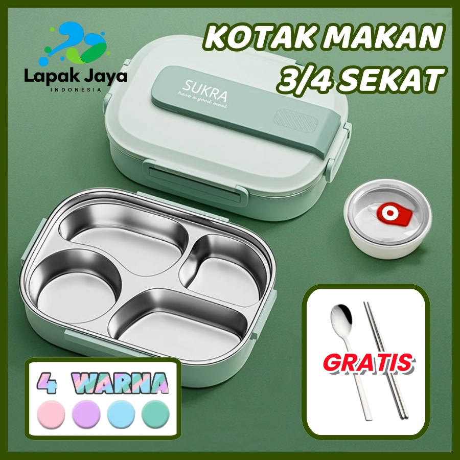 Kotak Makan Stainless 3/4 Sekat Tempat Bekal Makan Anak Sekolah Lunch Box Stainless Anti Tumpah Baja Tahan K