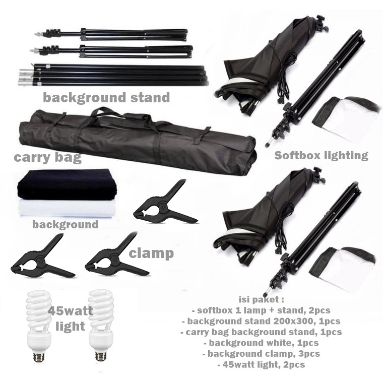Paket Lighting Foto Studio Set Background Stand Softbox Lampu Studio Foto Studio Vlog Youtube Review