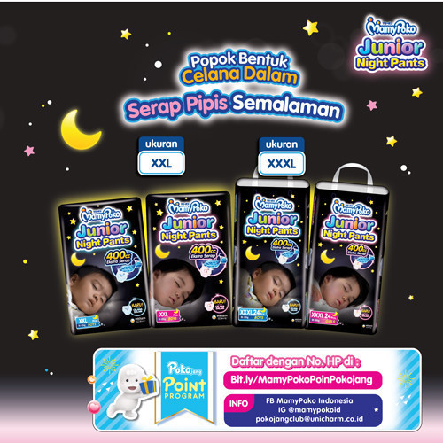 Mamypoko Junior Night Pants - Xxxl 24 - Boys Girls - Popok Celana