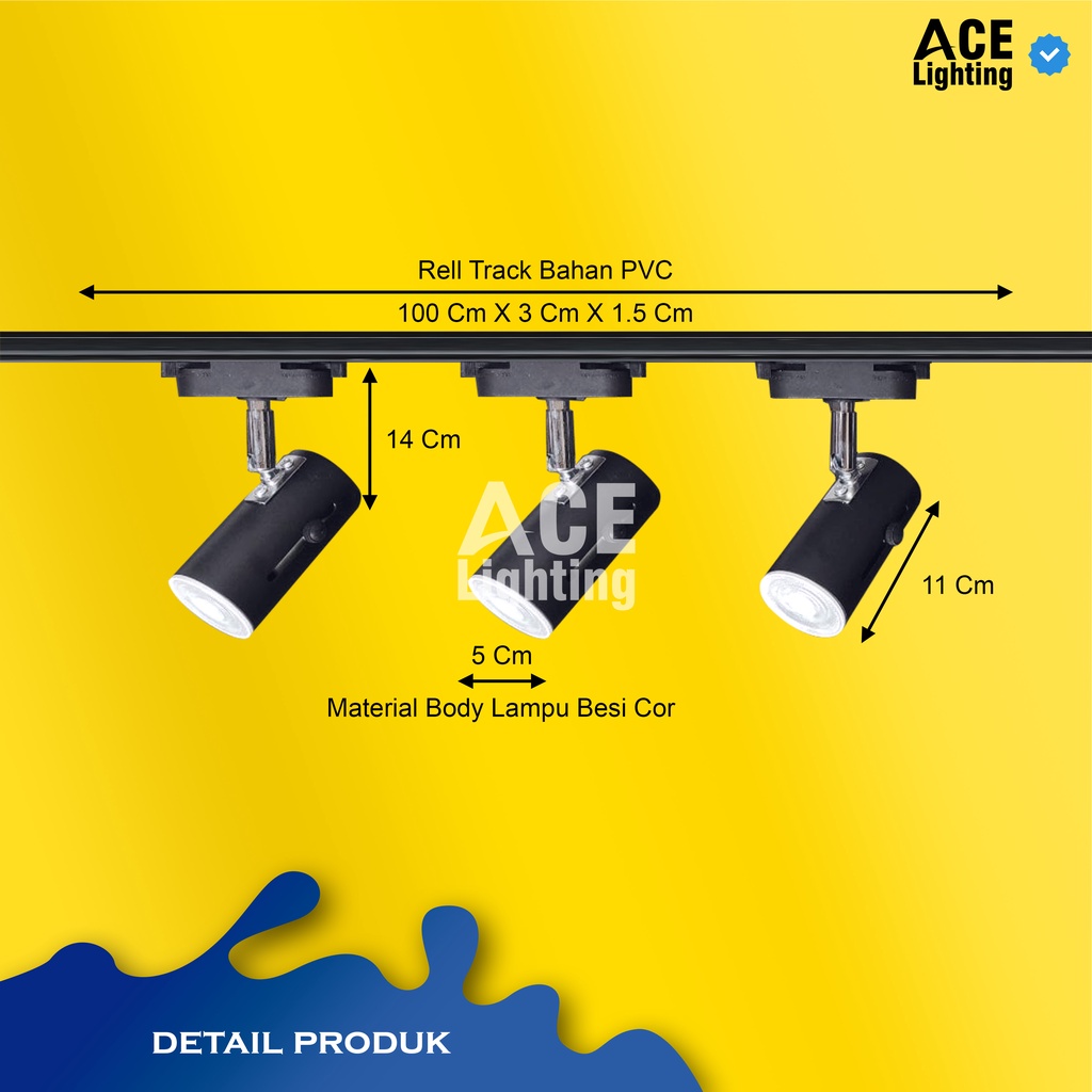 Paket Lampu Sorot Rel 1 Set Isi 3 Spotlight Track Light Rell E27