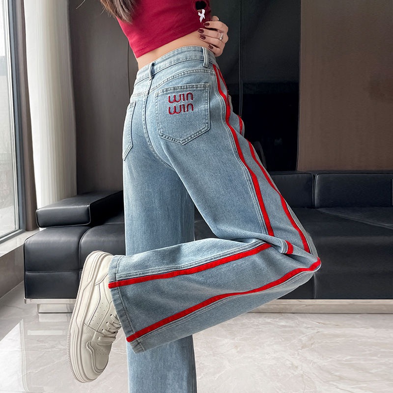 7th Color / Straight Jeans Panjang Wanita Celana Korean Style Celana Kulot Denim Celana Highwaist Celana Biru Muda