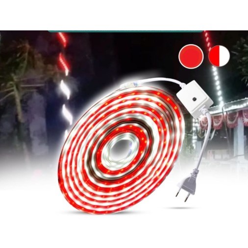 Paket 5M - 20M Lampu Led Strip Rgb ( Warni -Warni Kedip ) // Merah-Putih Free Soket + Tutup 2835 Ac 220V Waterproof / La