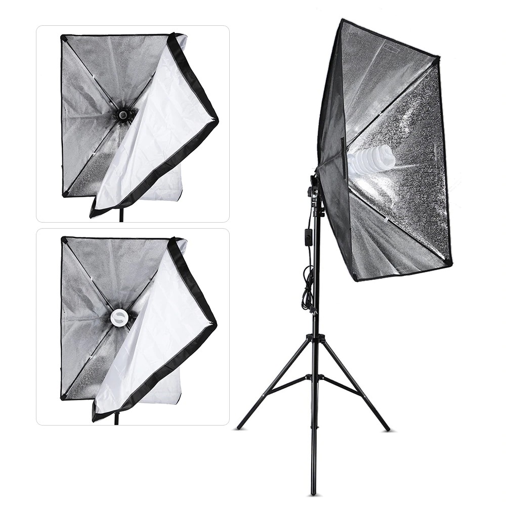 Paket Set 4 In 1 Softbox E27 50X70Cm + Light Stand + Lampu Bohlam Led Studio Soket Payung 50 X 70 Cm Lighting Continuous
