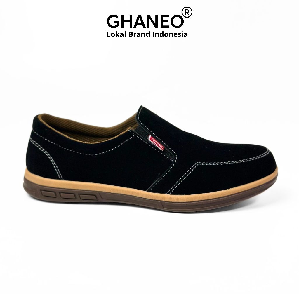 Ghaneo - Sepatu Pria Slip On Kulit Casual Hitam G-87