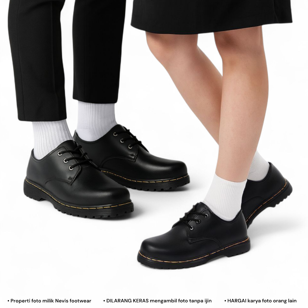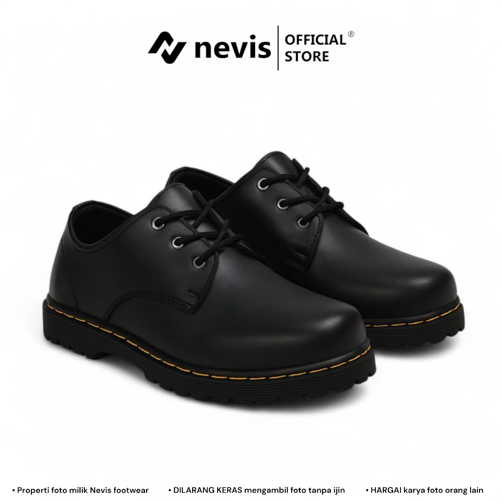 Nevis - Derby Black Sepatu Formal Pria Wanita 36-45 Casual Kerja Kantor Semi Kulit Simpel Basic Hitam