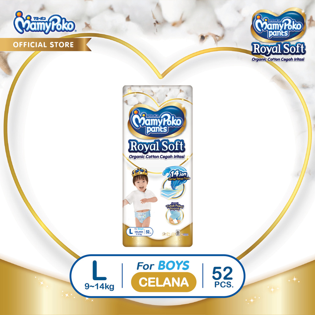 Mamypoko Pants Royal Soft Organic Cotton - L 52 - Boys - Popok Celana