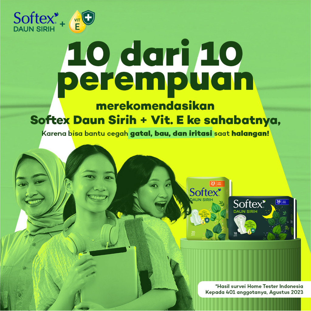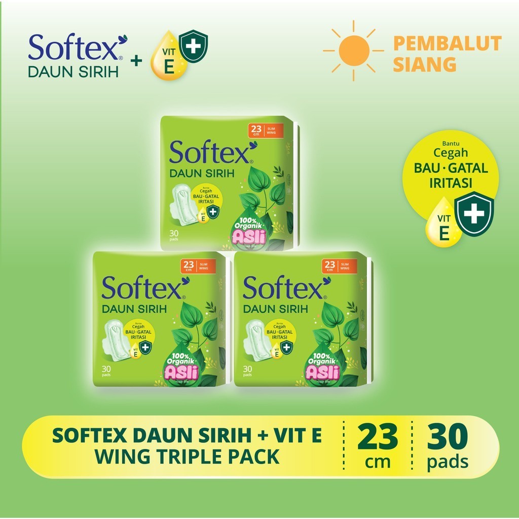 Softex Daun Sirih + Vitamin E Jumbo Pack 23Cm 30S X 3 Pack - Pembalut Daun Sirih Siang