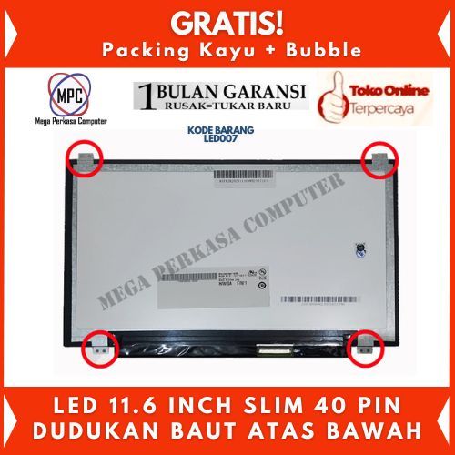 Lcd Led Laptop Notebook 11.6 Inch Slim 40 Pin Kuping Atas Bawah