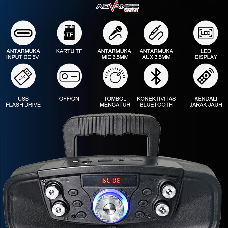 Advance Speaker Bluetooth Bass H-801N Salon Aktif Bluetooth Full Bass Speaker Subwoofer 8INCH Speaker Mic Speaker Portable Multimedia Garansi Resmi 1 Tahun
