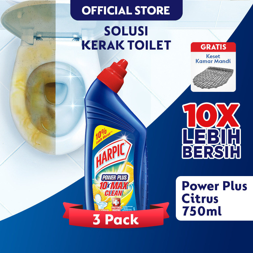 Harpic Power Plus Citrus 750Ml (3Pcs) Bottle - Pembersih Toilet Free Keset Kamar Mandi