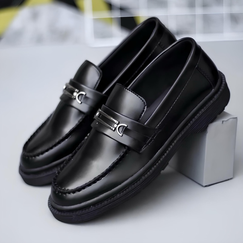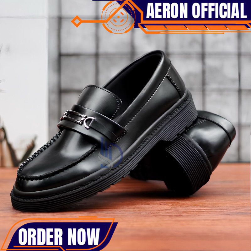 AERON Sepatu Pantofel Oxford Formal Docmart Kerja Hitam Pria - Kelra Black