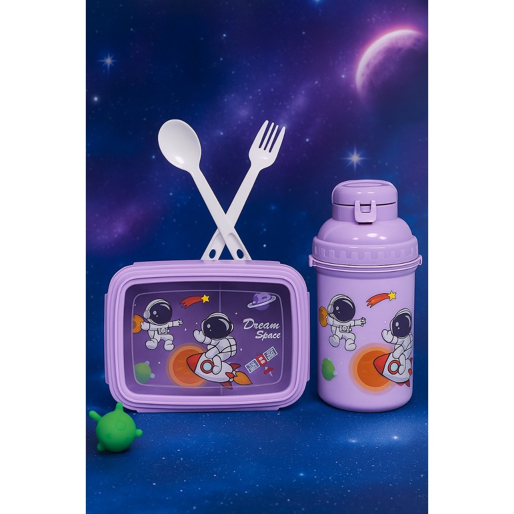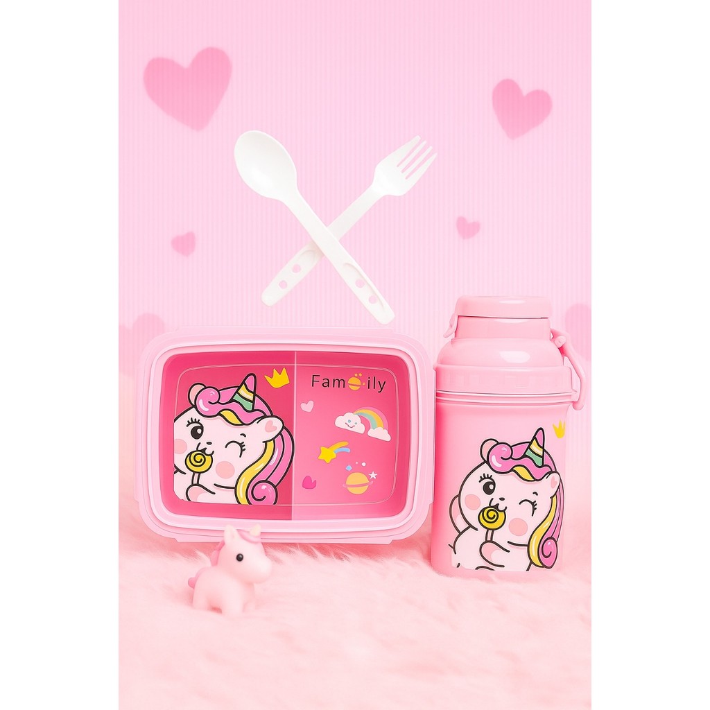 1 Set Tempat Makan Anak 2 Sekat + Botol Minum Lunch Box Tebal Anti Tumpah Kotak Bekal Sekolah W514