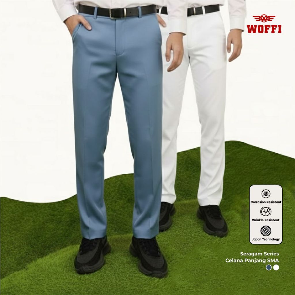 Seragam SMA Woffi Celana Panjang Abu-abu dan Putih