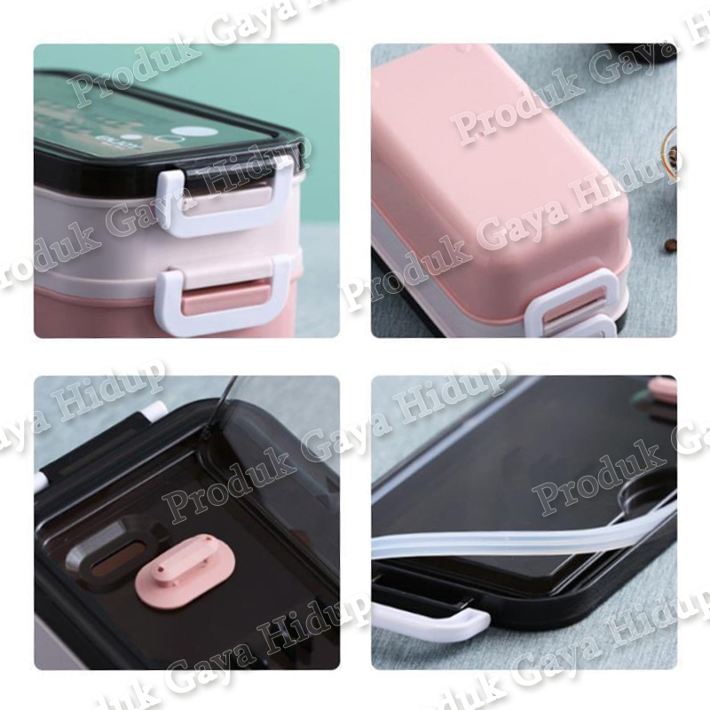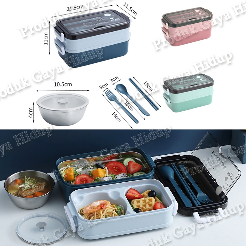 3In1 Lunch Box 304 Stainless Kotak Bekal Makan Sendok Garpu Set Kotak Makan Anak Tempat Makan Sarapan Sekolah Kotak Beka