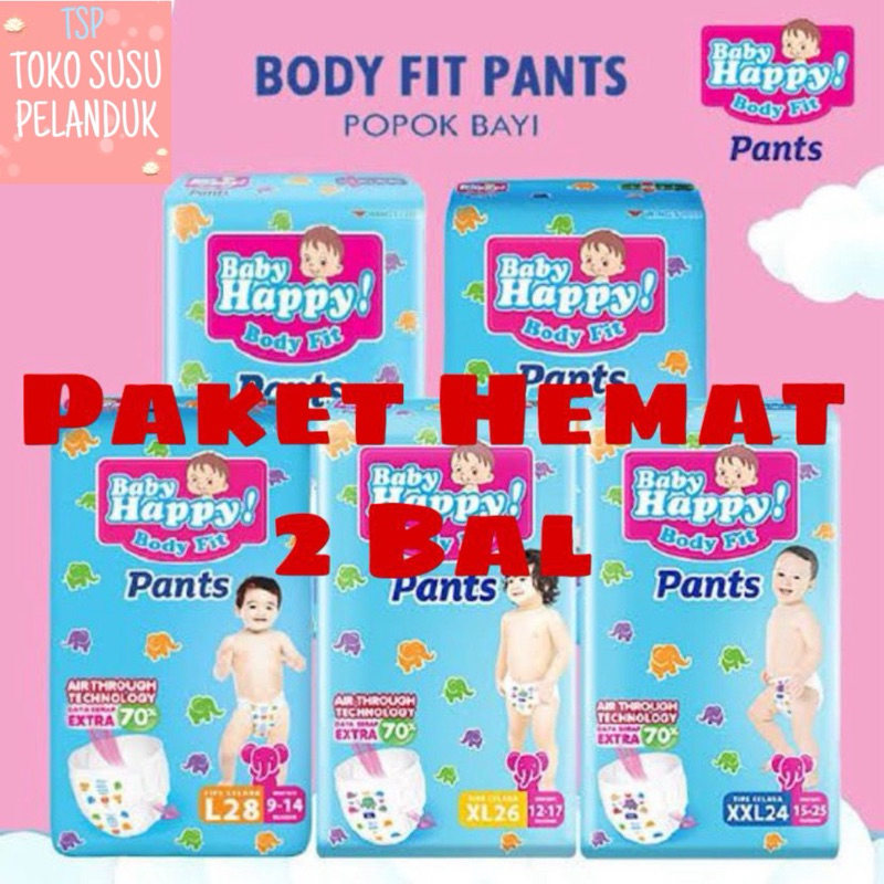 (Paket 2 Bal) Baby Happy Pants S38+2/M32/L28/Xl26/Xxl24/M48/L42/Xl38