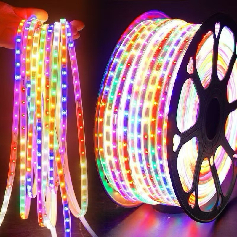 Paket Lampu Led Strip Selang Paket Rgb 3528 2835 220V + Adaptor 5M - 50M Outdoor Led Strip Rgb Merah Putih Lampu Agustus