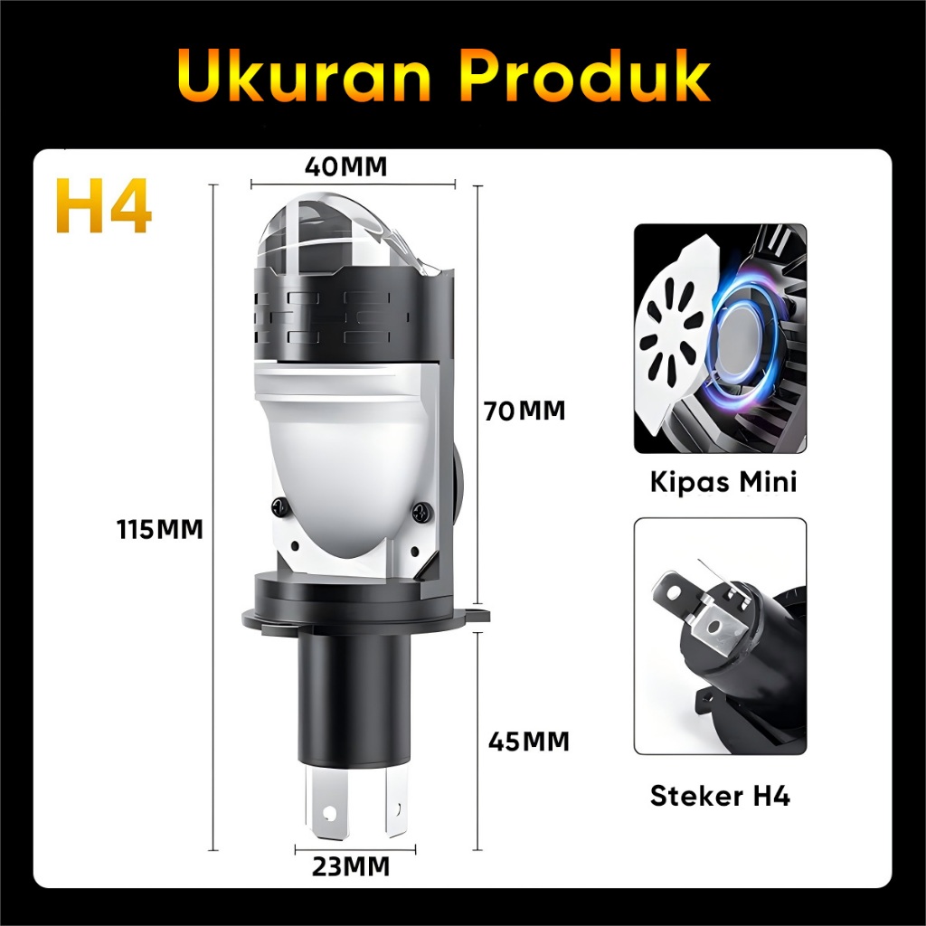 SIROMA Premium Lampu Led Mobil H4 High Low DC / Lampu Utama A6C 50W 3600LM Dengan Devil Eye Plus Kipas Pendingin Full Aluminium Untuk Mobil/Motor