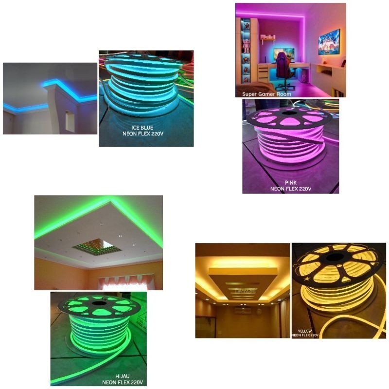 Paket Lampu Led Strip Neon Flex 1 - 10 Meter / Fleksibel Ac 220V Lengkap Tinggal Colok Langsung Nyala 1 / 2 / 3 / 4 / 5