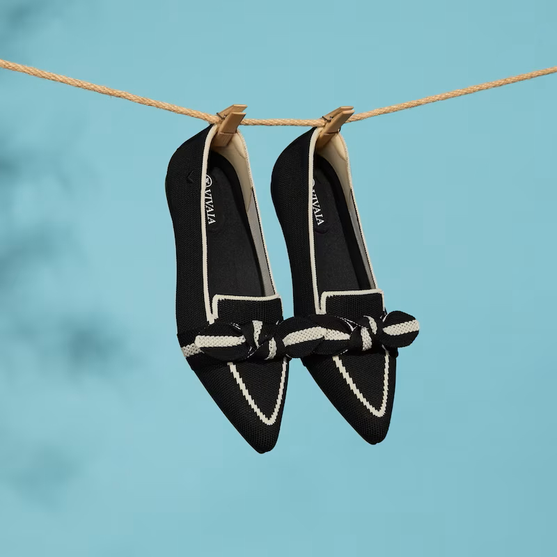 VIVAIA Sepatu Wanita Pointed-Toe Bow Loafers (Michelle 2.0) - Black Cream Ivory