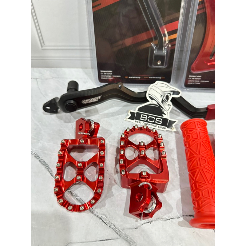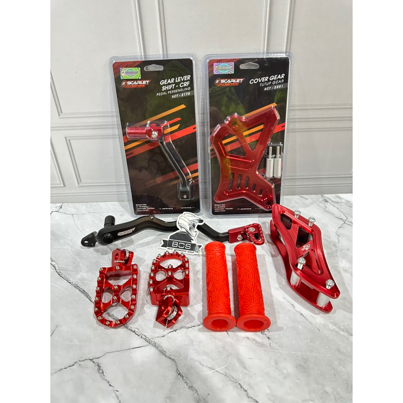 Paket Supermoto Crf150 Red Edition Foosteap Pedal Rem Operan Gigi Tensioner Rantai Cover Gear Crf150