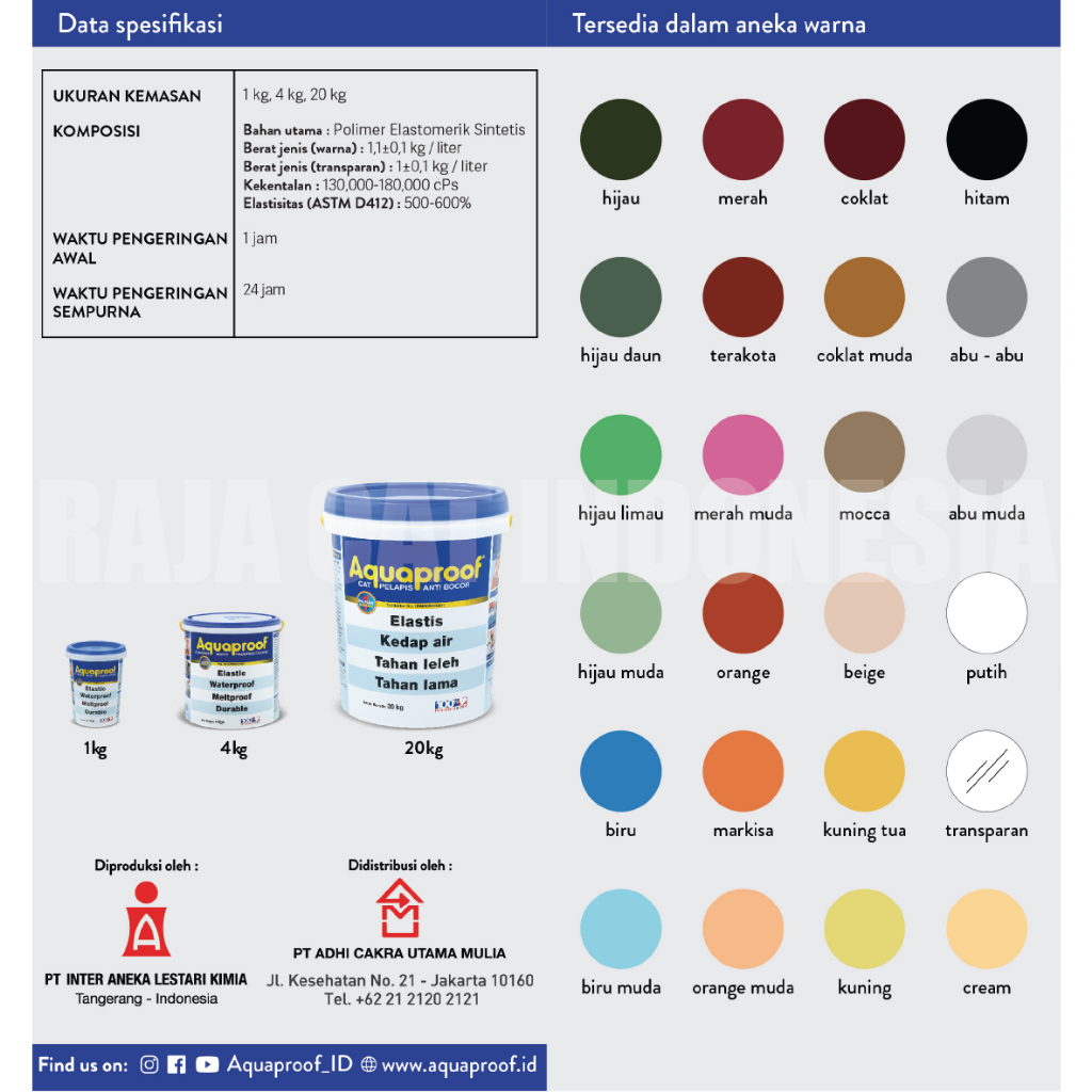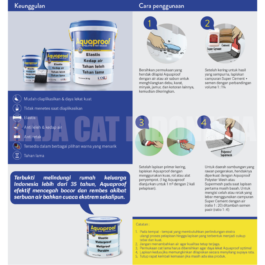 Cat Anti Bocor | Aquaproof Waterproofing 4Kg | Kan Galon