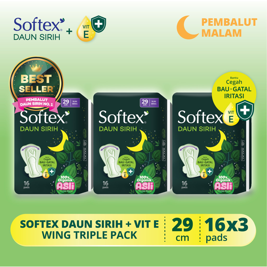 Softex Daun Sirih + Vitamin E 29Cm 16 X 3 Pack - Pembalut Daun Sirih Malam
