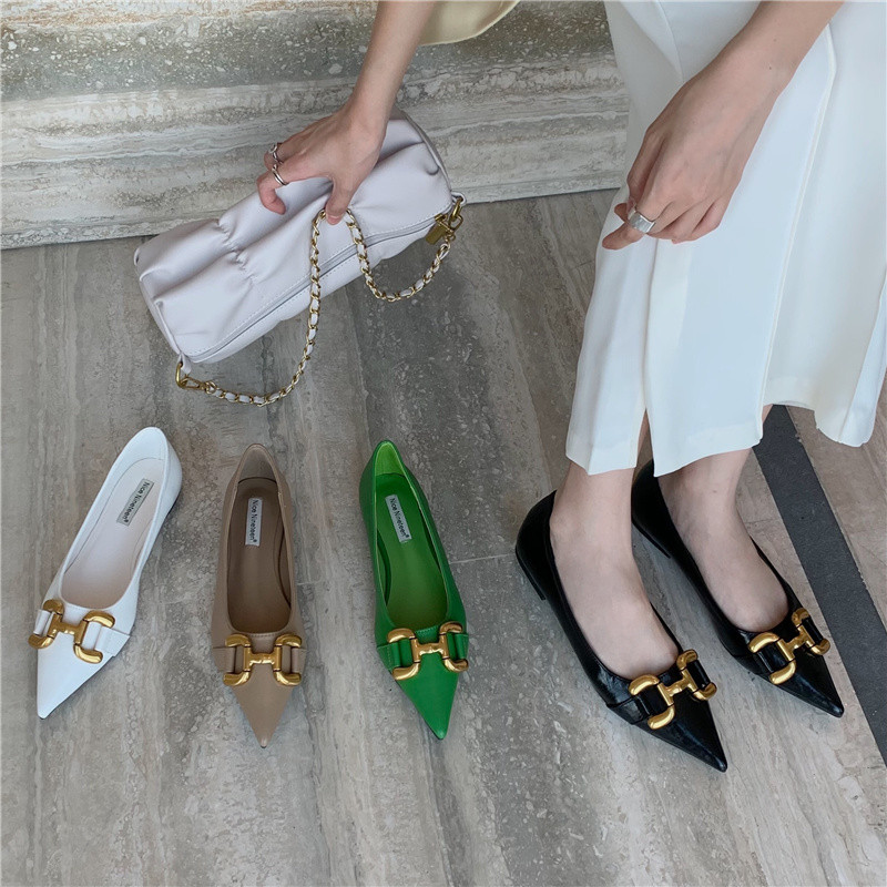 SEPATU WANITA UJUNG RUNCCING ELEGAN - Flat Shoes Sol Lembut & Nyaman, Model Mulut Dangkal Ukuran Besar, Cocok untuk Kerja/Pesta (Ready Stock)