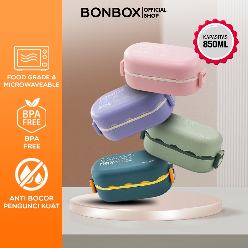 Bonbox Lunch Box Set 850Ml Kotak Bekal Makan 2 Sekat Tempat Bekal Makan Anti Tumpah Btw30301