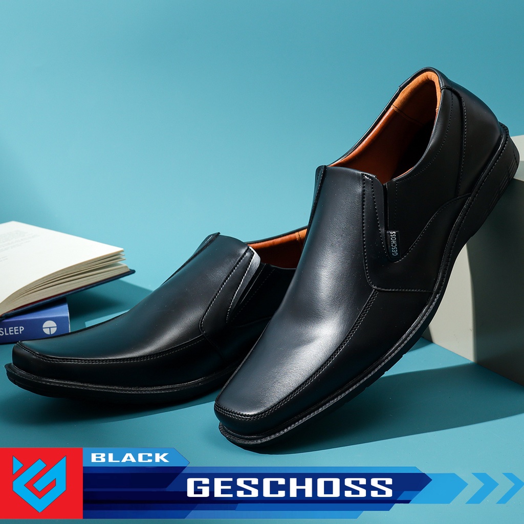 GESCHOSS Sepatu Pria Formal Model Terbaru Bahan Kulit PU Premium Sepatu Kerja Sepatu Casual SLIP ON Lokal 100 PERSEN Original Terbaru