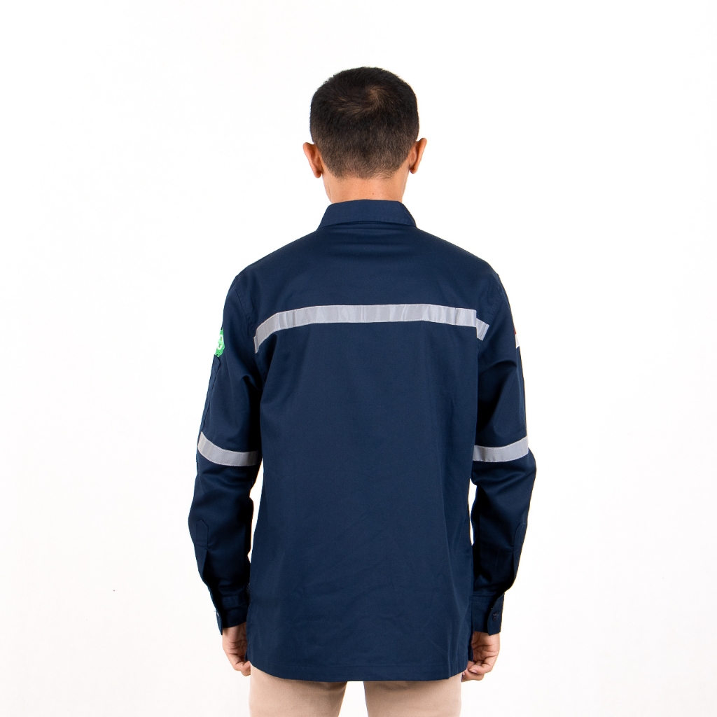 Baju Proyek Biru Dongker Navy Kemeja Bengkel Mekanik Teknisi Kerja Teknik Tambang Wearpack Sefty K3 Seragam Lapangan Produk Original Jahitind