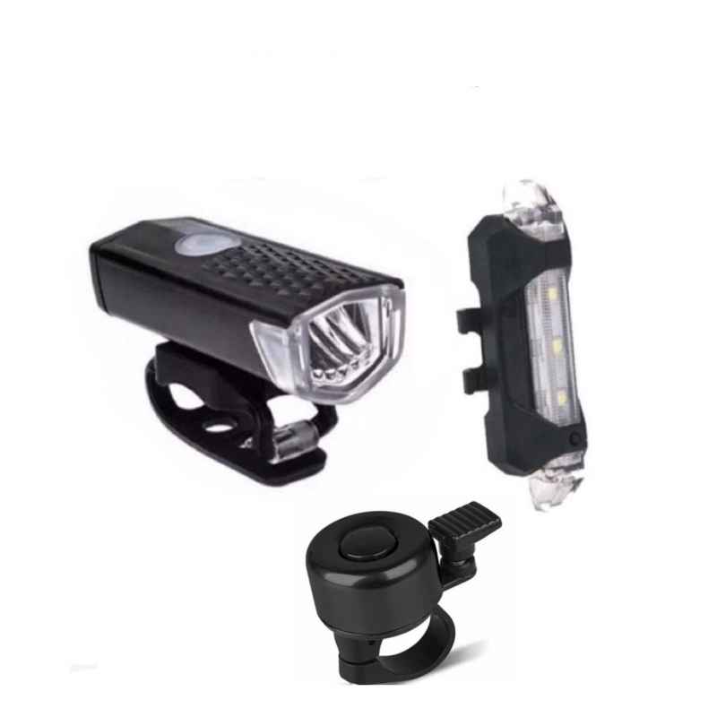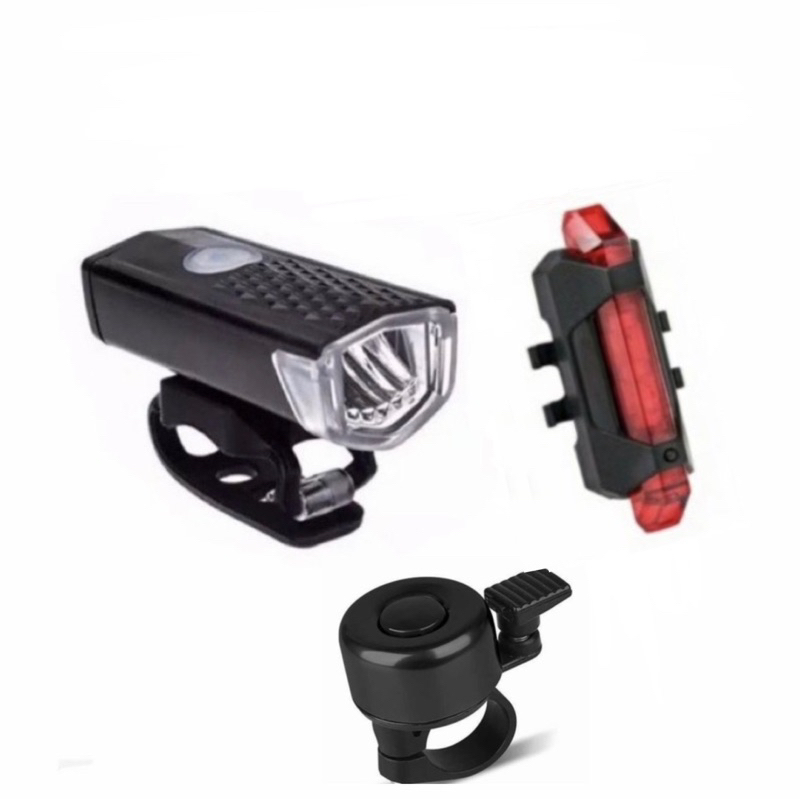 3 in 1 Paketan Lampu depan + lampu belakang dan Bel sepeda