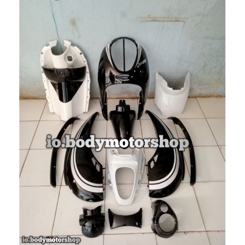 Cover Body Bodi Halus Kasar Scoopy Karbu Hitam Putih Plus Reflektor