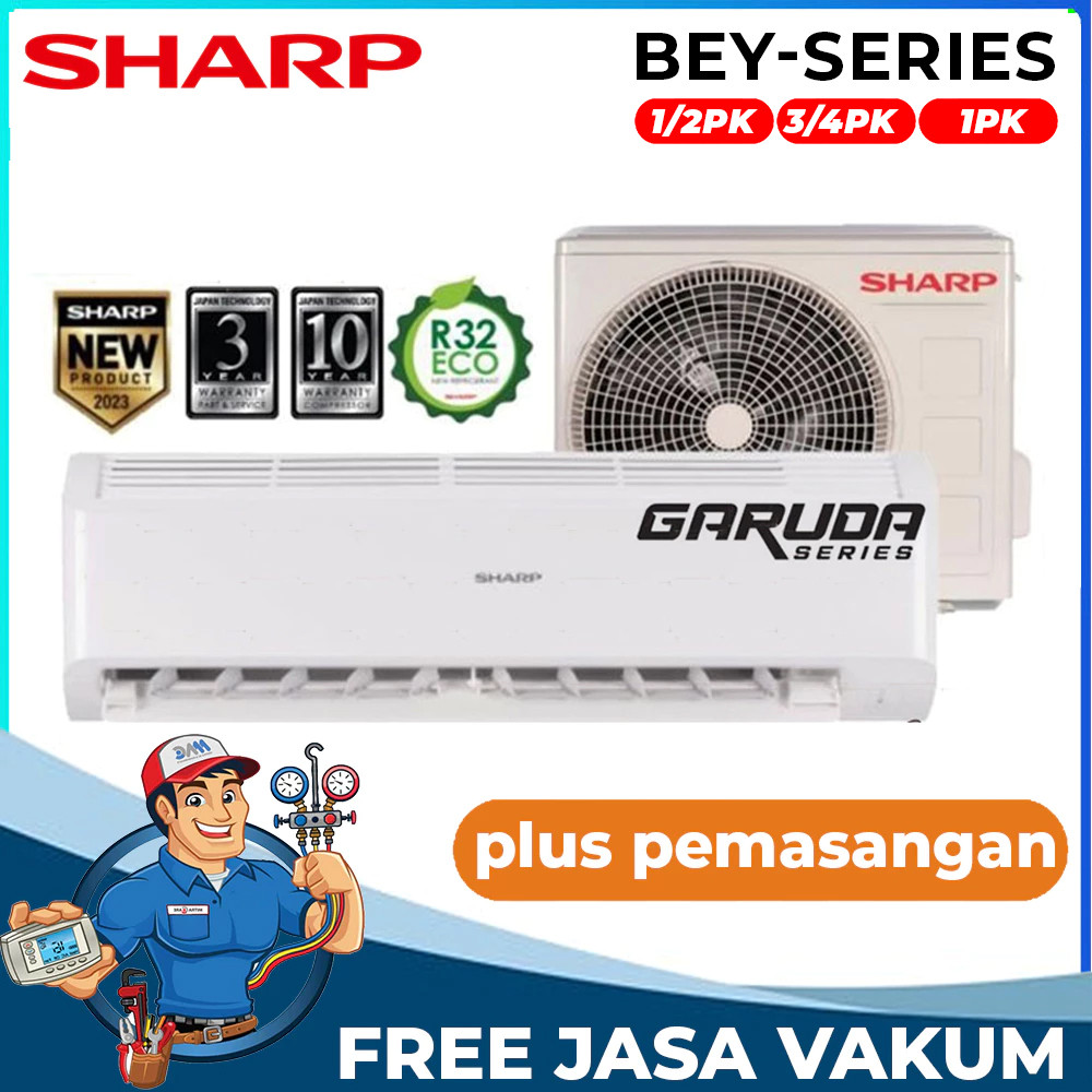 AC SHARP 1/2 PK /AC SHARP 3/4 PK/AC SHARP 1 PK + PASANG BEY SERIES GARUDA SERIES - Garansi Resmi 10 Th