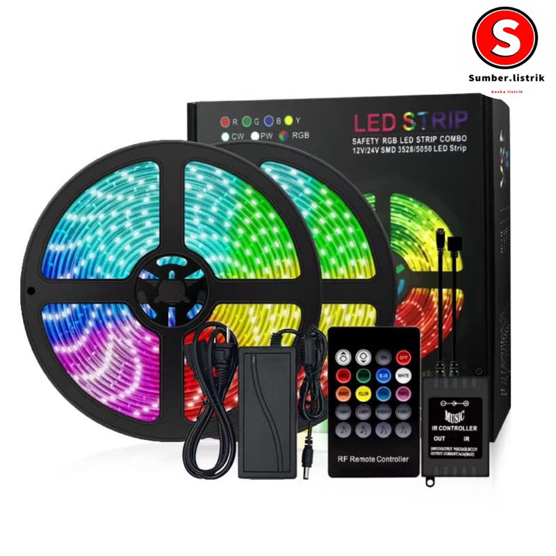 Paket Lampu Led Strip 5050 3528 2835 Rgb 5M 10M Ip44 Ip33 Rgb Remote Lampu Hias Warna Warni Lampu Kamar Aesthetic Tumblr