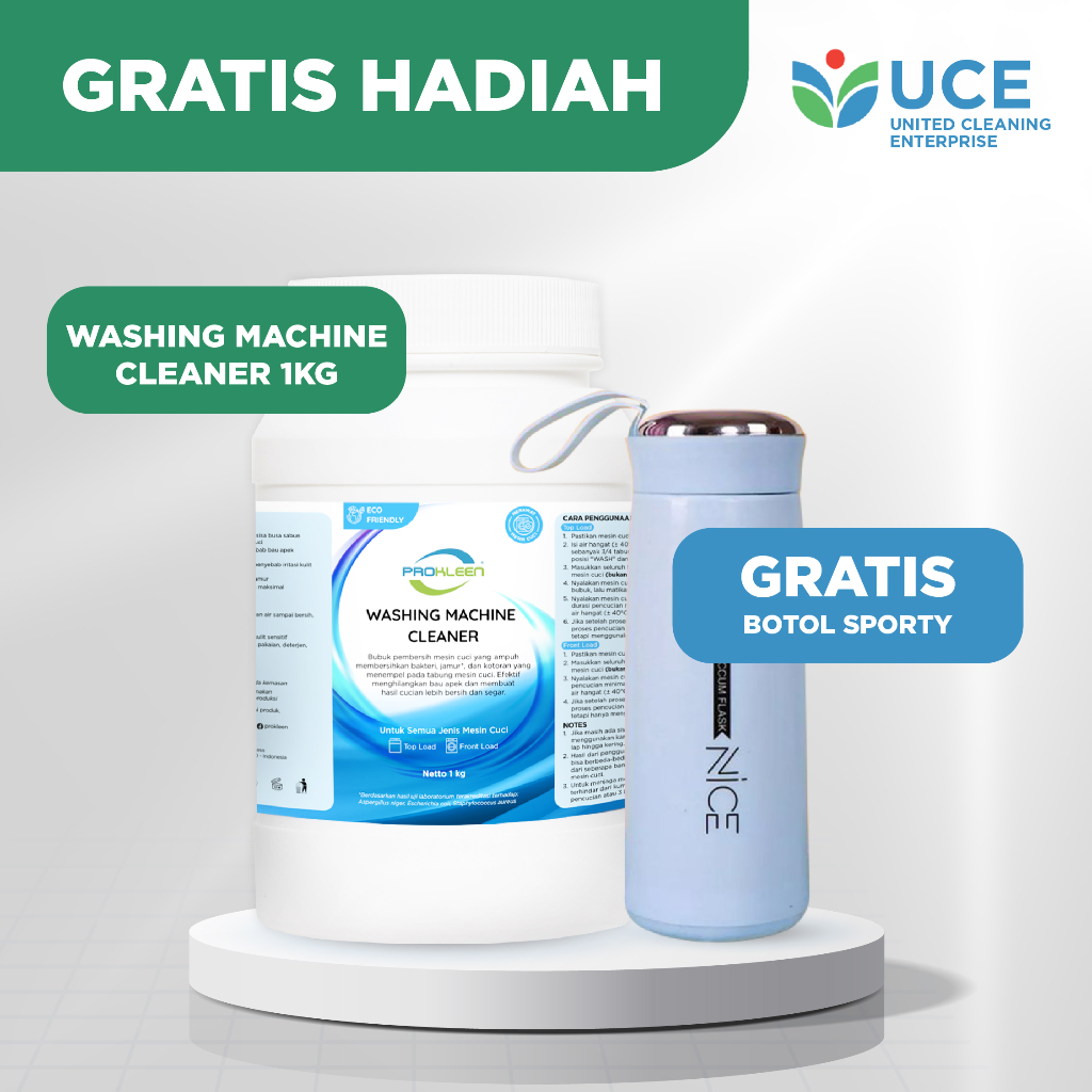 Pembersih Mesin Cuci Prokleen 1Kg + Free Bottle Minum