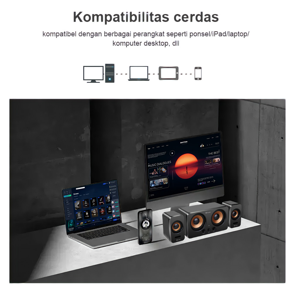 KISONLI Speaker Bluetooth Komputer Multimedia U3300BT Stereo Subwoofer AUX, USB