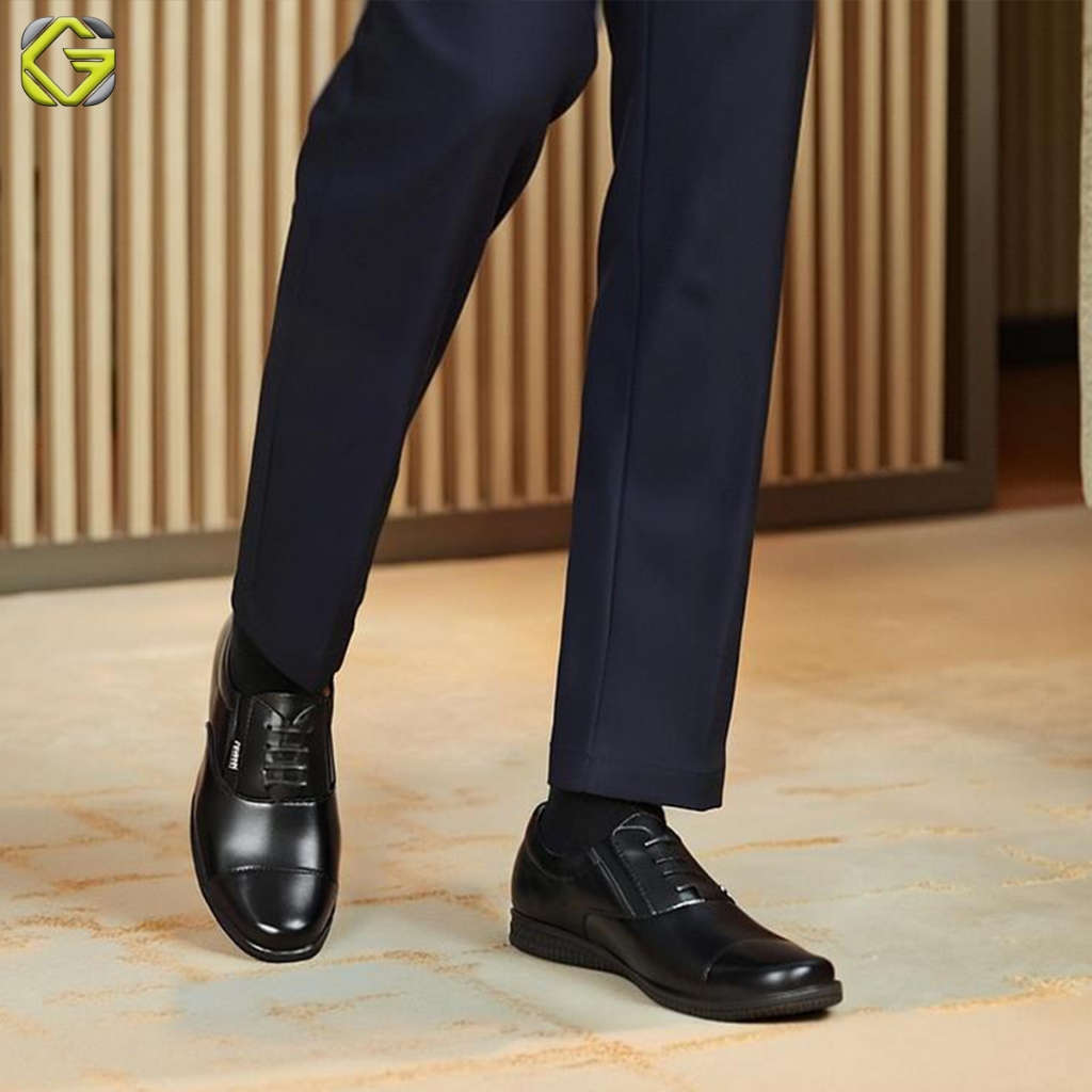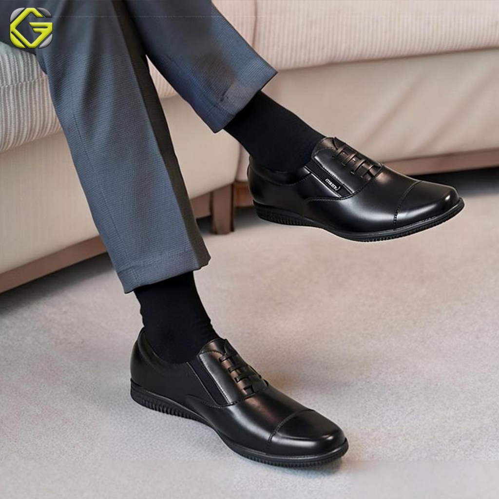 GVL Geovelli G1942 Oxford Full Black - Sepatu Pantopel Kasual Kerja Kantor Kulit Hitam