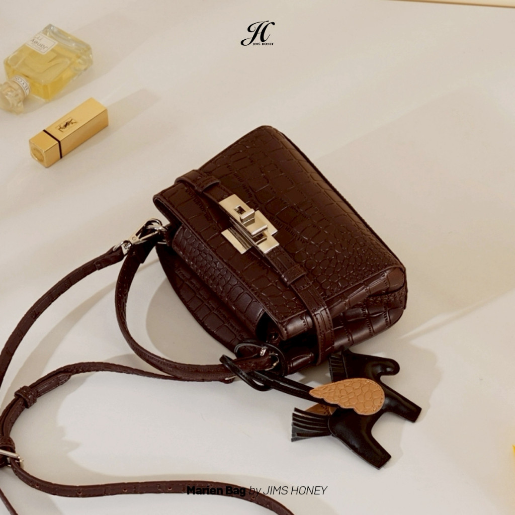 JIMS HONEY MARIEN BAG Tas Selempang Hand Bag Wanita Slingbag Cewek Jimshoney Trendy Elegan Kulit Sintetis Grade A Croco Texture Dengan Charm Kuda Lucu - Teddy