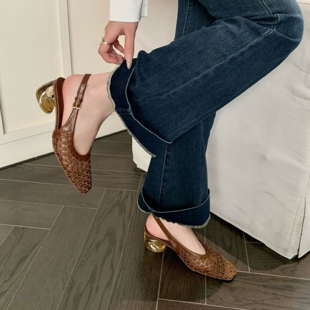 [COZY] Mia Sandal Heels Wanita Model Kepala Persegi Terbaru Hak Tebal Unik Fashion Korean Kekinian