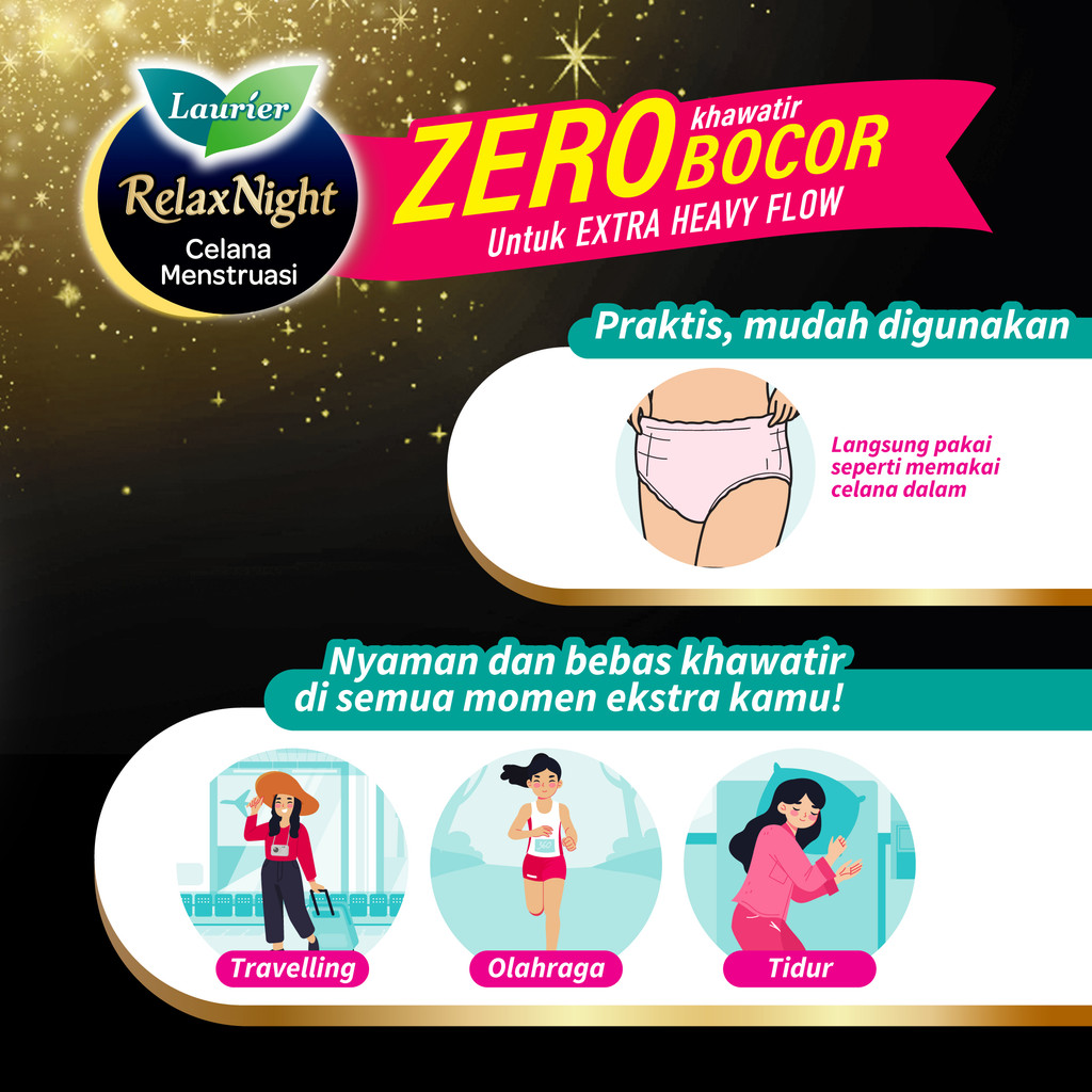 Laurier Relax Night Celana Menstruasi Pembalut Wanita Size M-Xl 2 Buah (Pembalut Celana) Triplepack