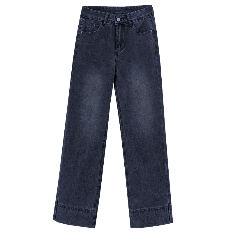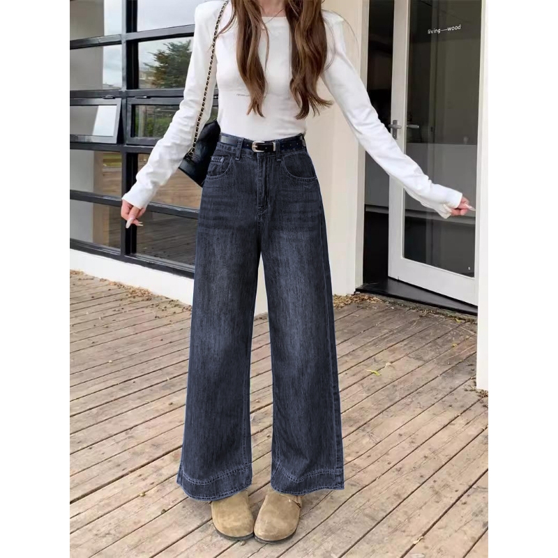 Biru retro Korean Highwaist Kasual Jeans Kulot Wide Leg Jeans Wanita