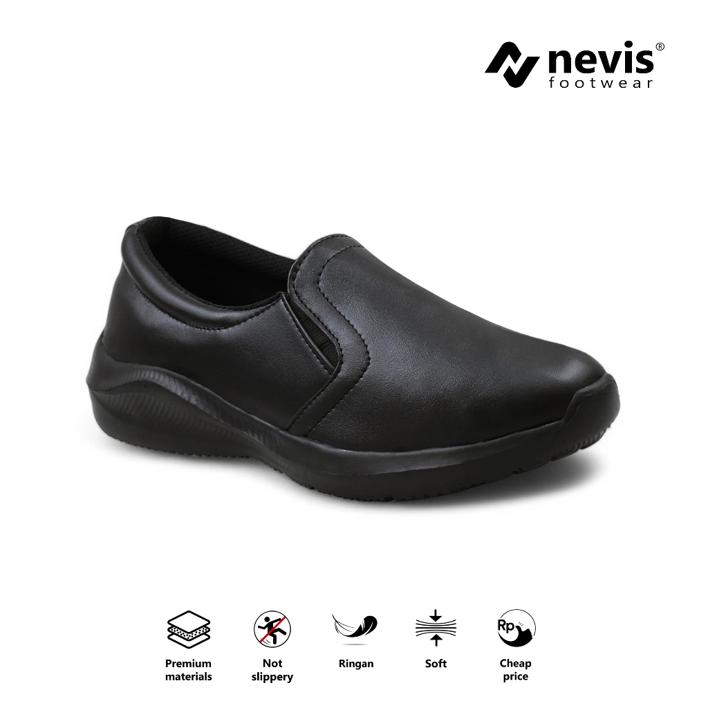 NEVIS Sepatu Slip On Pria Franco Jumbo Big Size 39-49 Kerja Sekolah Kasual Kulit Hitam Polos