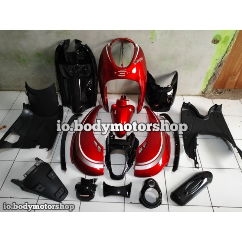 Cover Body Full Body Halus Honda Scoopy Karbu Tahun 2008-2012 Warna Merah Hitam