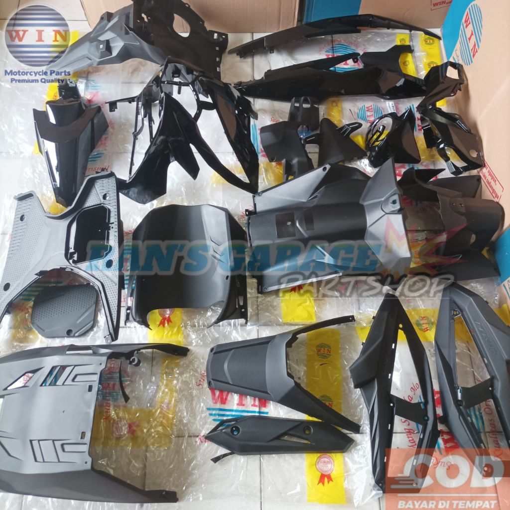 Win Fullset Cover Bodi Alus + Kasar Honda Beat Fi Esp Eco Warna Hitam Full Set Fulset Komplit Set Cover Body Tameng Bato