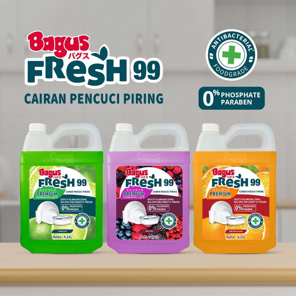 Bagus Fresh 99 Premium Anti Bakteri Dish Washing . Jerigen 4,25L Sabun Cuci Piring Penghilang Lemak Dan Bau